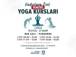 Bodrum Belediyesi, kadınlara özel ücretsiz yoga kursları düzenliyor. ‘Kendinle Buluş, Nefes Al, Güçlen’ sloganıyla hayata geçirilen kurslar 30 Eylül’de başlıyor ve iki aylık periyotlarla devam edecek.