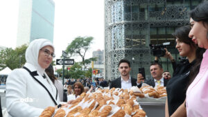 Cumhurbaşkanı Erdoğan’ın eşi Emine Erdoğan, BM 80. Genel Kurulu için bulunduğu New York’ta Türkevi önünde kurulan simit standını ziyaret edip bilgi aldı.