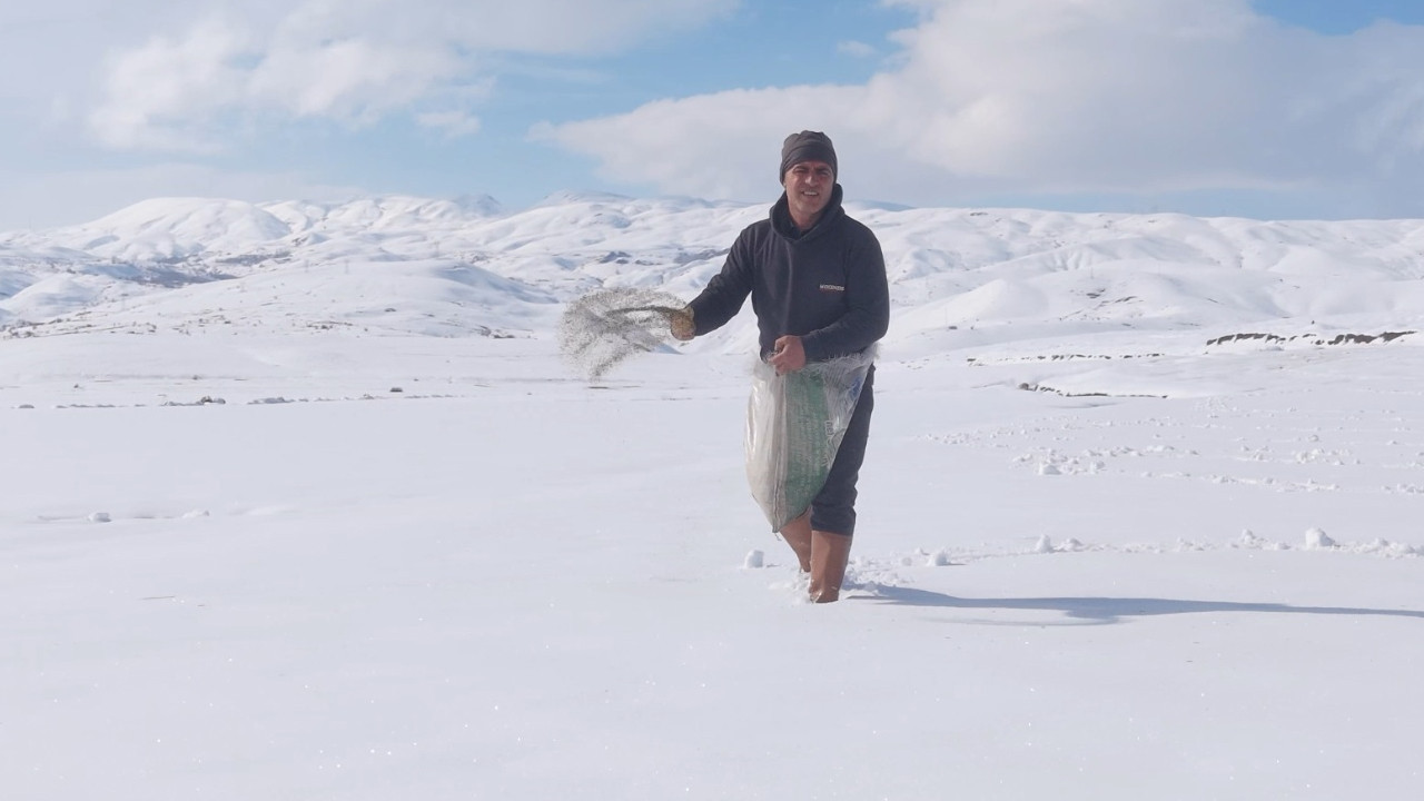 ‘BİZ EKTİK, GERİSİ NASİP’ Geçen yıl bu yöntemi farklı bir tarlada denediklerini ve başarılı sonuçlar aldıklarını dile getiren Yalçın, “Benzer özelliklere sahip, düz bir alanda bu yöntemi uyguladık ve iyi bir verim elde ettik. Şimdi bu yıl da aynı şekilde bu tarlamızda deniyoruz. Karın üzerine serptiğimiz tohumlar, bir süre sonra toprağa ulaşacak. İlkbaharda gece donan, gündüz ise çözülen toprak yapısında meydana gelen küçük çatlaklar sayesinde tohumlar toprağa gömülüyor. Biz ekimimizi tamamladık, gerisi ise nasip” ifadelerini kullandı.