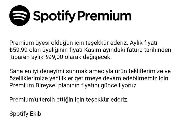 Kasım ayı faturalarının kullanıcılara ulaşmasıyla birlikte, fiyat değişikliğinin gerçek olduğu ortaya çıktı. Uygun fiyat politikasıyla öne çıkan Spotify, YouTube Music ve Apple Music gibi rakiplerinden farklılaşarak daha pahalı hale geldi.